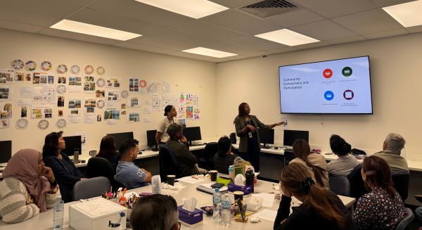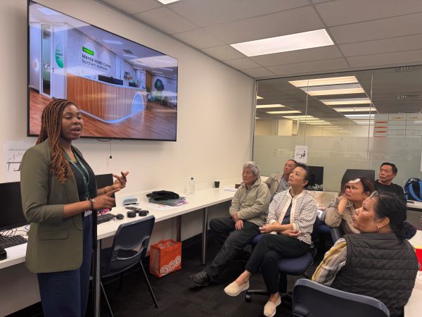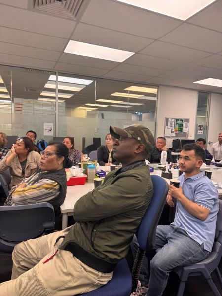 Present at the session were Pivot Training staff — Vy, Sam, and trainers Chris and Minh — alongside guest speakers Chidera (Community Engagement Officer) and Zoe (Aboriginal and Torres Strait Islander Peer Practitioner) from Sonder.